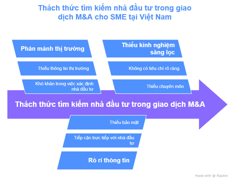 - Không biết bắt đầu từ đâu: Thị trường mua bán, sáp nhập (M&A) cho SME tại Việt Nam còn khá phân mảnh, việc xác định và tiếp cận đúng đối tượng nhà đầu tư tiềm năng là không hề dễ dàng.